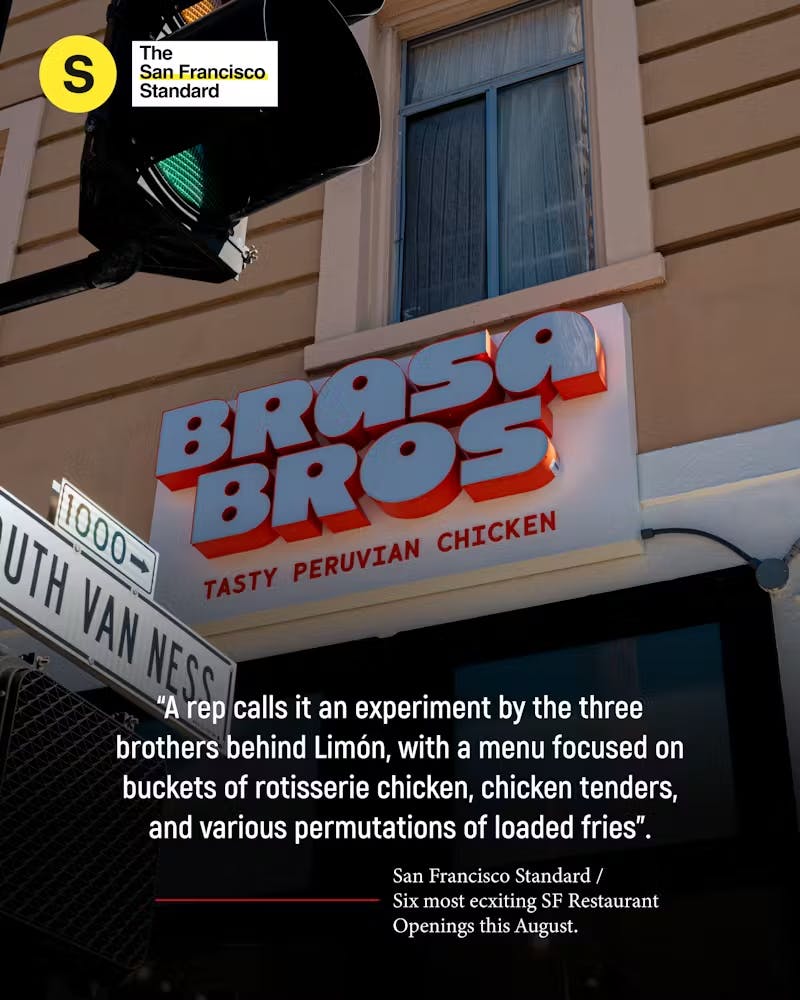 That the San Francisco Chronicle singles out Brasa Bros matters for two reasons. First, it validates the thesis that properly executed pollo a la brasa wins over Bay Area palates. Second, it confirms that quality and accessibility can coexist on the same menu. In the Chronicle’s words, this style of rotisserie “is a hit in the Bay Area,” and Brasa Bros is the proof—served on a tray.